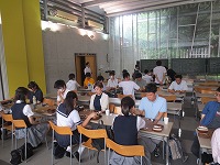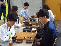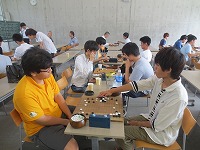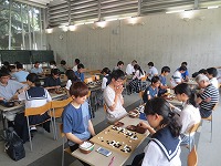 高校生が普段対局する機会の少ない大学生と対局し、夏の大会に向けて練習に励みます。